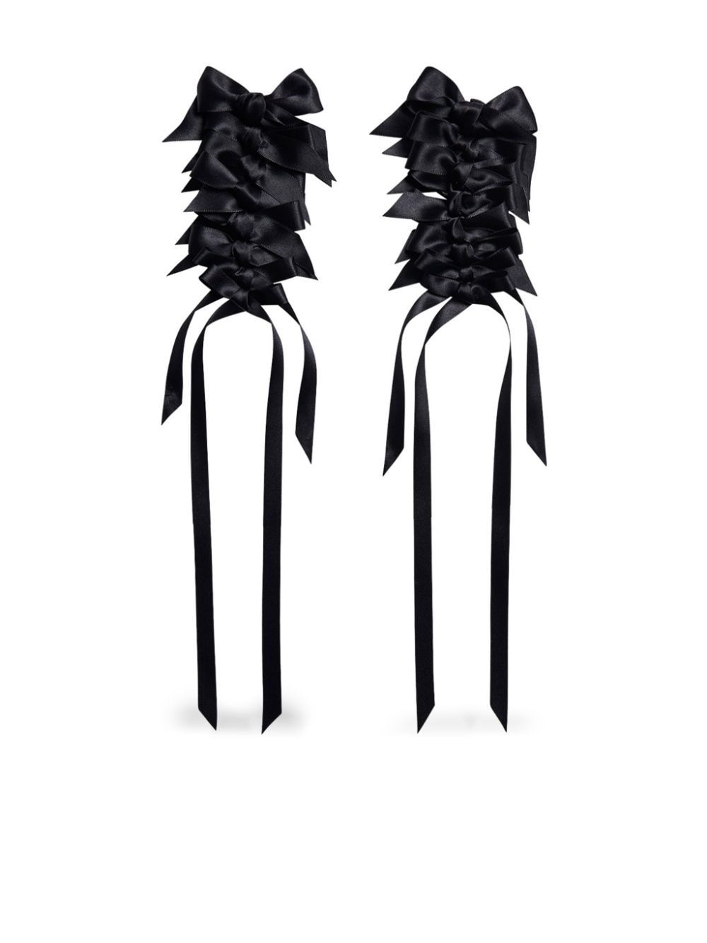 jet black satin bow detailing post-back fastening for pierced ears These earrings come as a pair.