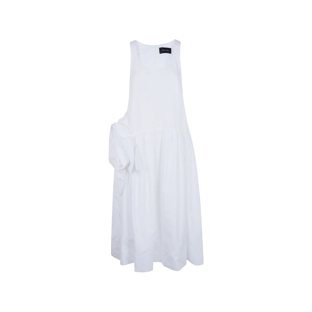 white gathered detail sleeveless round neck zip fastening A-line skirt