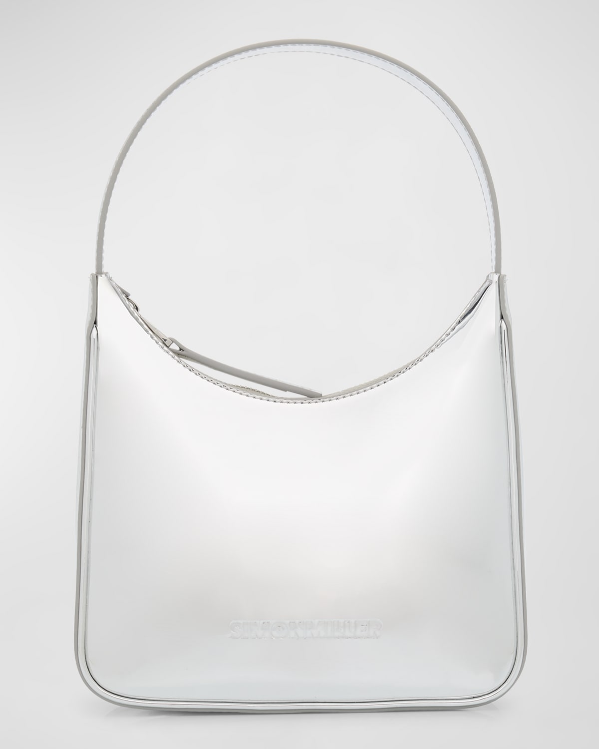 SIMONMILLER "Snap" shoulder bag in metallic faux leather (polyurethane), and polyester Shoulder strap Zip top closure Approx. 5.5"H x 8"W x 3"D Imported