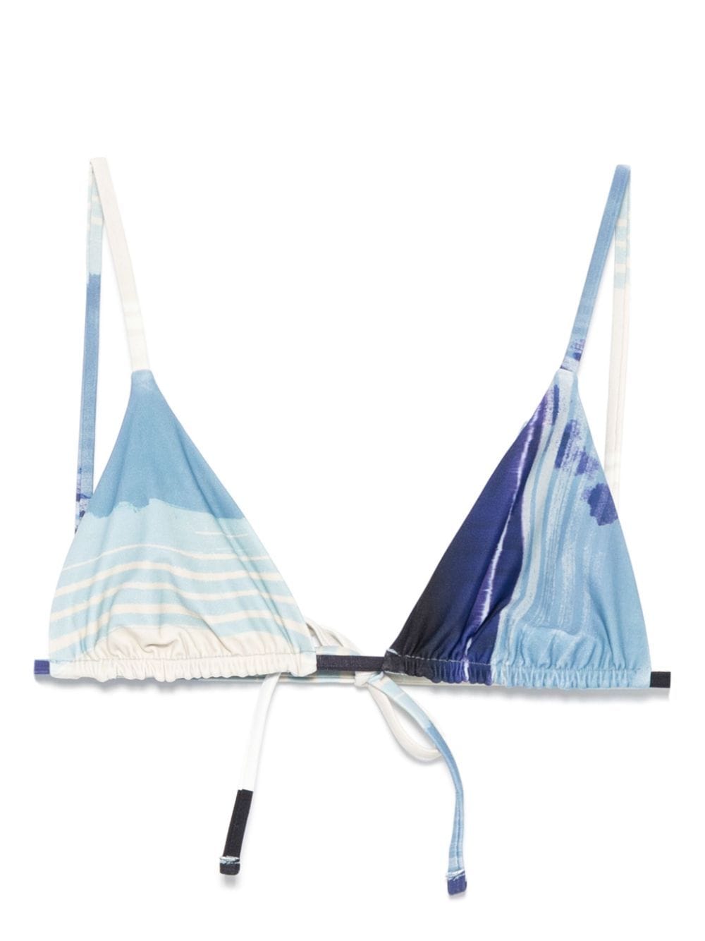 light blue/white stretch-jersey tie-fastening straps shoreline stripe print spaghetti straps triangle cup Be mindful to try on swimwear over your own garments.