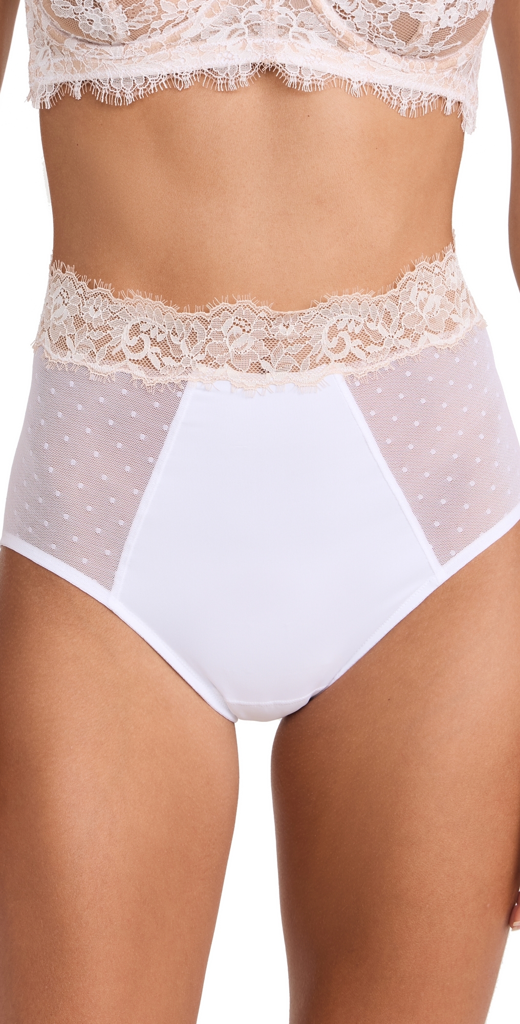 Mesh floral lace. Jersey lined gusset. High-waisted briefs. Sheer. Shell: 86% nylon/14% elastane. Lined. Lining: 100% cotton. Hand wash. Imported, China.