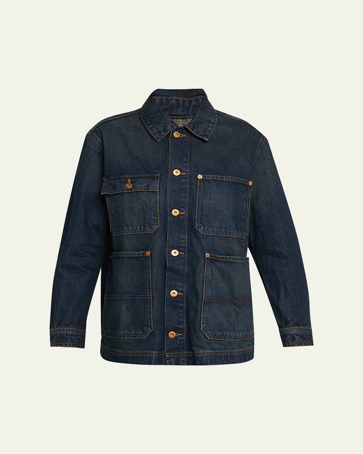 SLVRLAKE "Worker" denim utility jacket Spread collar; button front Long sleeves; button cuffs Four front pockets Oversized fit Cotton; self lining Machine wash cold Made in USA from imported materials