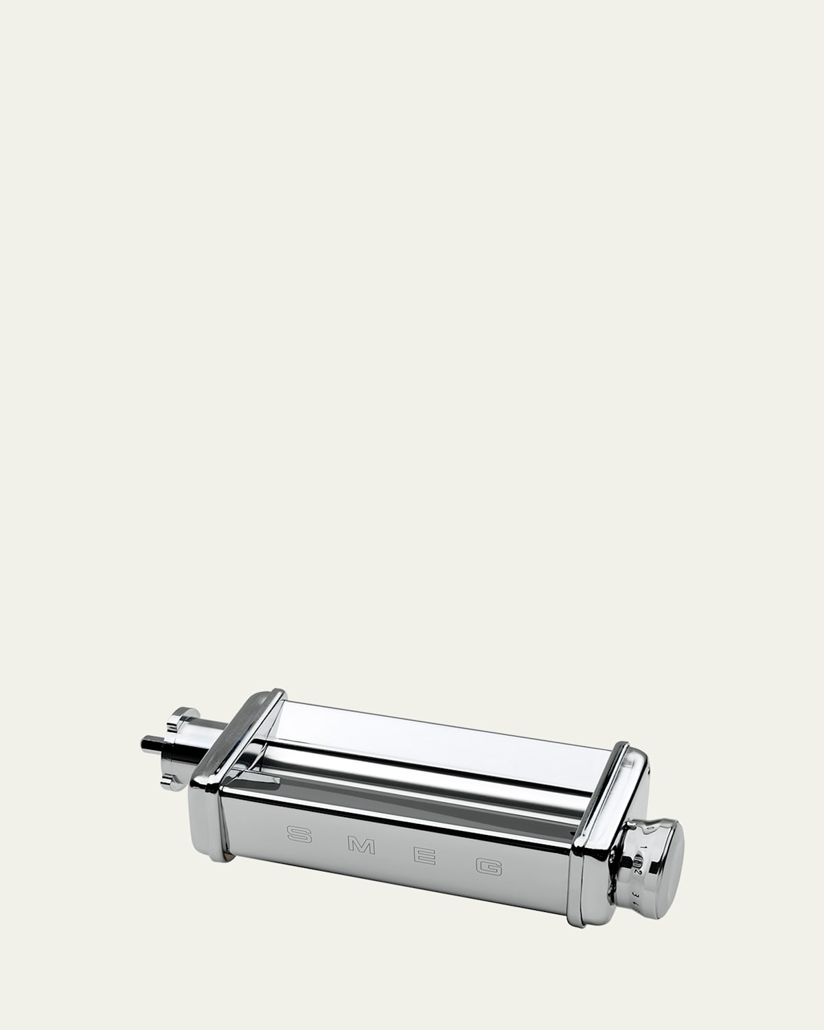Pasta roller accessory is compatible with the Smeg stand mixer Chrome steel body and anodized aluminum alloy rolls 10 settings to adjust dough thickness Max dough width: 140 mm Approx. 9"L x 3"W Item Weight (Lbs.): 2.0 Wipe clean Imported