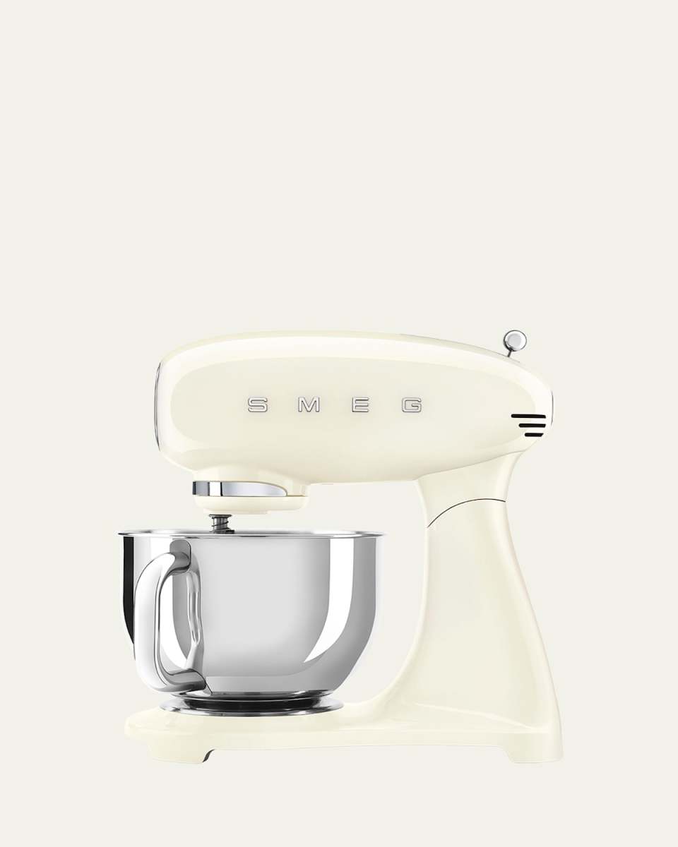 50's retro style aesthetic fullcolor stand mixer comes with handled bowl Optimum planetary rotation 10 speed settings Smooth start system Safety lock when the head is tilted up Overload motor protection Direct drive motor Frontal accessory port Antislip feet Power: 800 W Bowl capacity, 4.8 L Approx. 16"W x 8.7"D x 15"T Cord length: 3 ft Plastic/metal Item Weight (Lbs.): 17.0 Wipe clean Imported