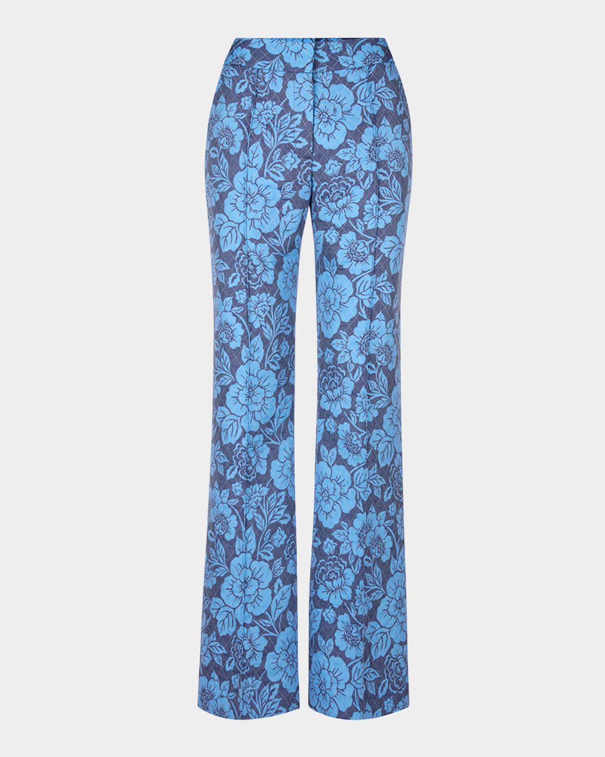 Smythe pants feature front and back pintucks to elongate the leg Approx. 34" inseam High rise Side seam pockets Full length Wide legs Hidden hook/zip fly Polyester/cotton Made in Canada