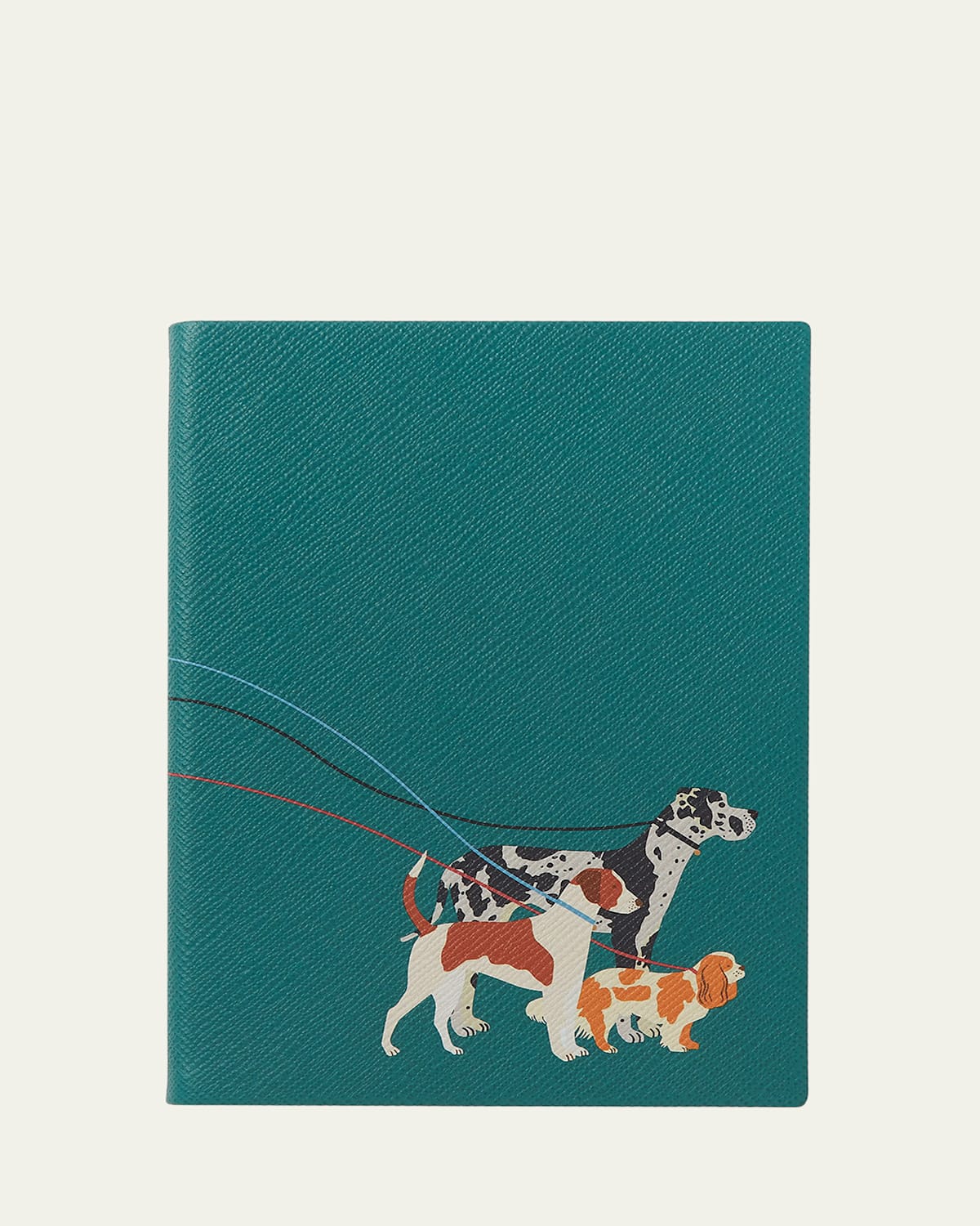Notebook featuring a dog motif Leather cover Paper pages Approx. 5.5"L x 3.4"W Imported
