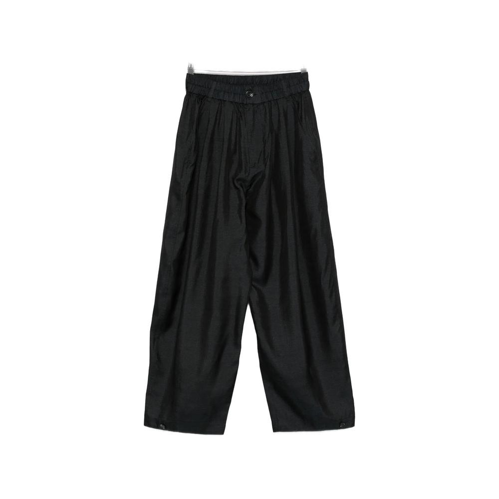 black elasticated waistband button fastening wide leg cropped slash pockets
