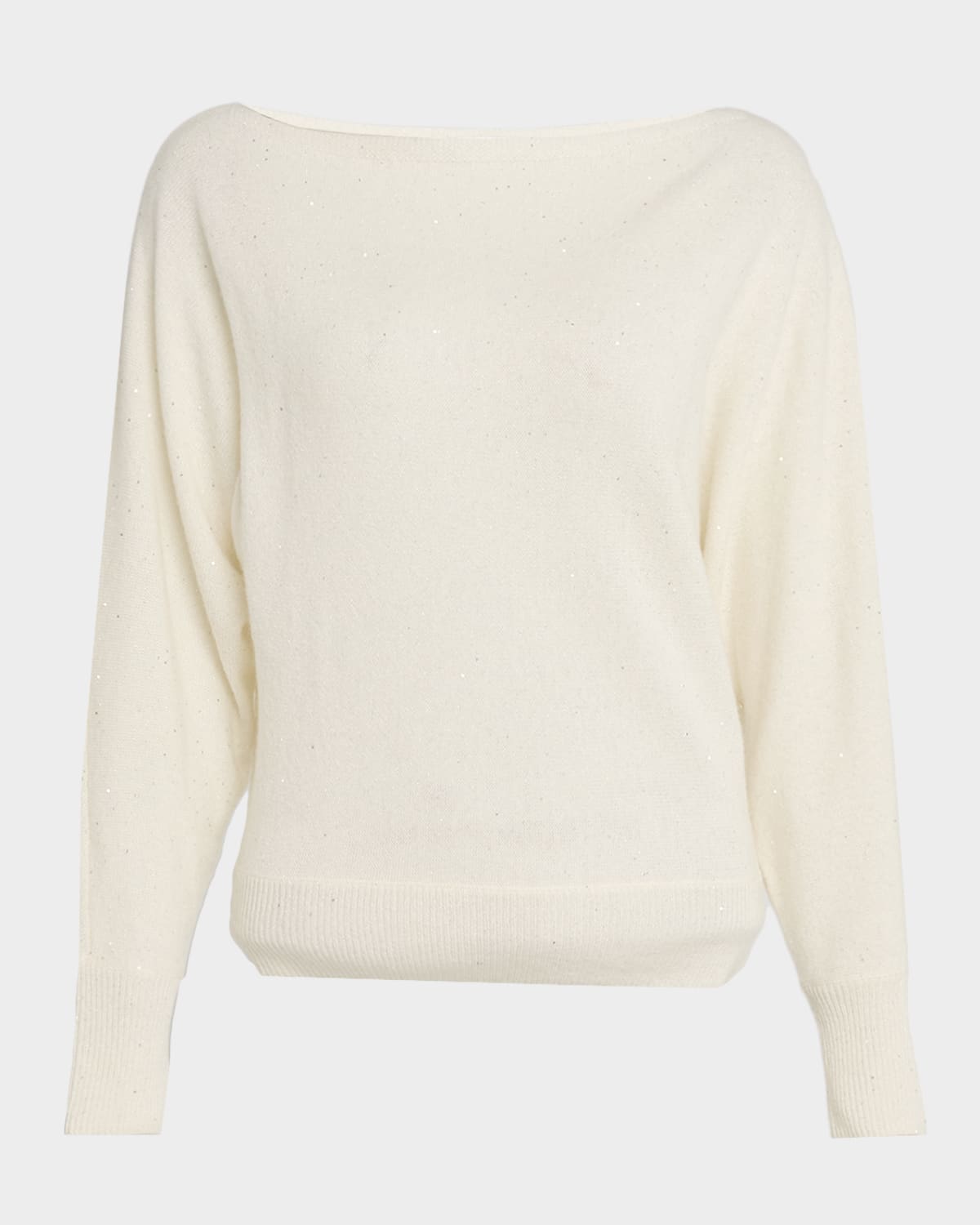 This Sofia Cashmere sweater is soft and lightweight, speckled with sequins and subtly tapered to hug the hips Approx. 22"L from shoulders to hem High neckline Long sleeves; approx. 29.5"L Relaxed fit Pullover style Cashmere/nylon/polyamide Dry clean Imported