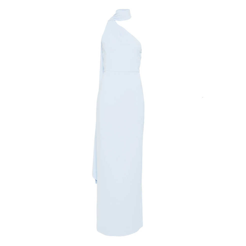 ice blue one-shoulder design drape detail rear zip fastening below-the-knee length straight hem