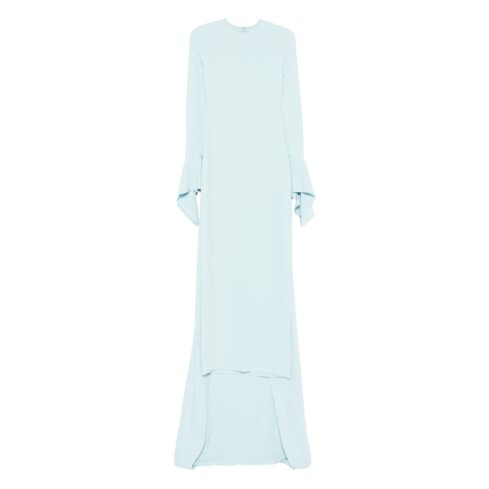light blue bell sleeves layered skirt round neck long sleeves