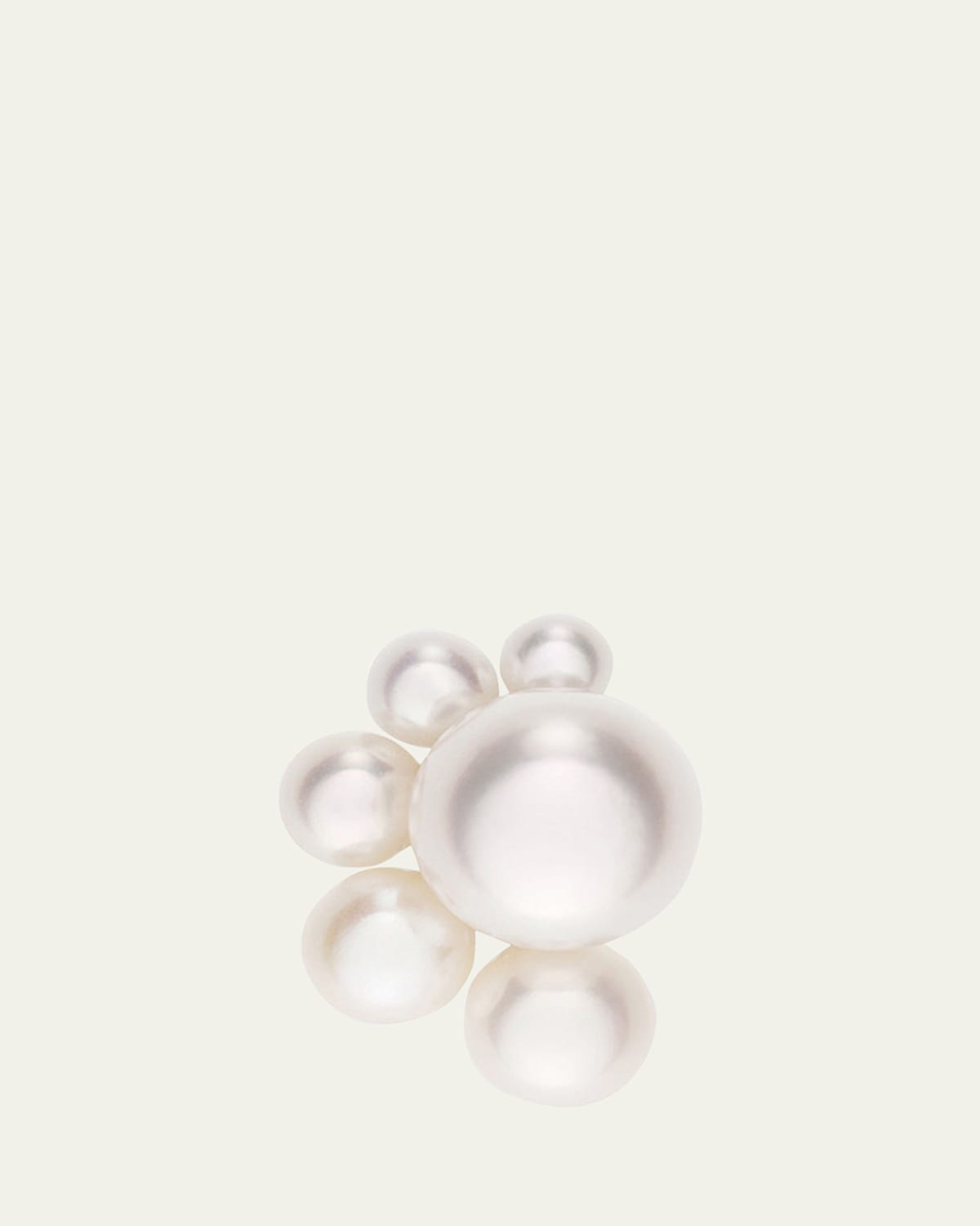 Sophie Bille Brahe pearl cluster stud earring. Polished 14karat yellow gold hardware. White dyed freshwater cultured pearls. For pierced ears. Right ear specific. Sold individually.