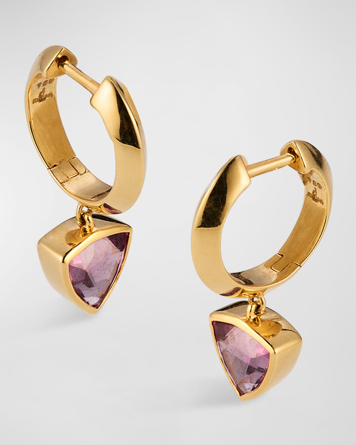 Sorellina huggie earrings Polished 18karat yellow gold Trillioncut colorchanging garnets 2.00 total garnet carat weight For pierced ears Imported