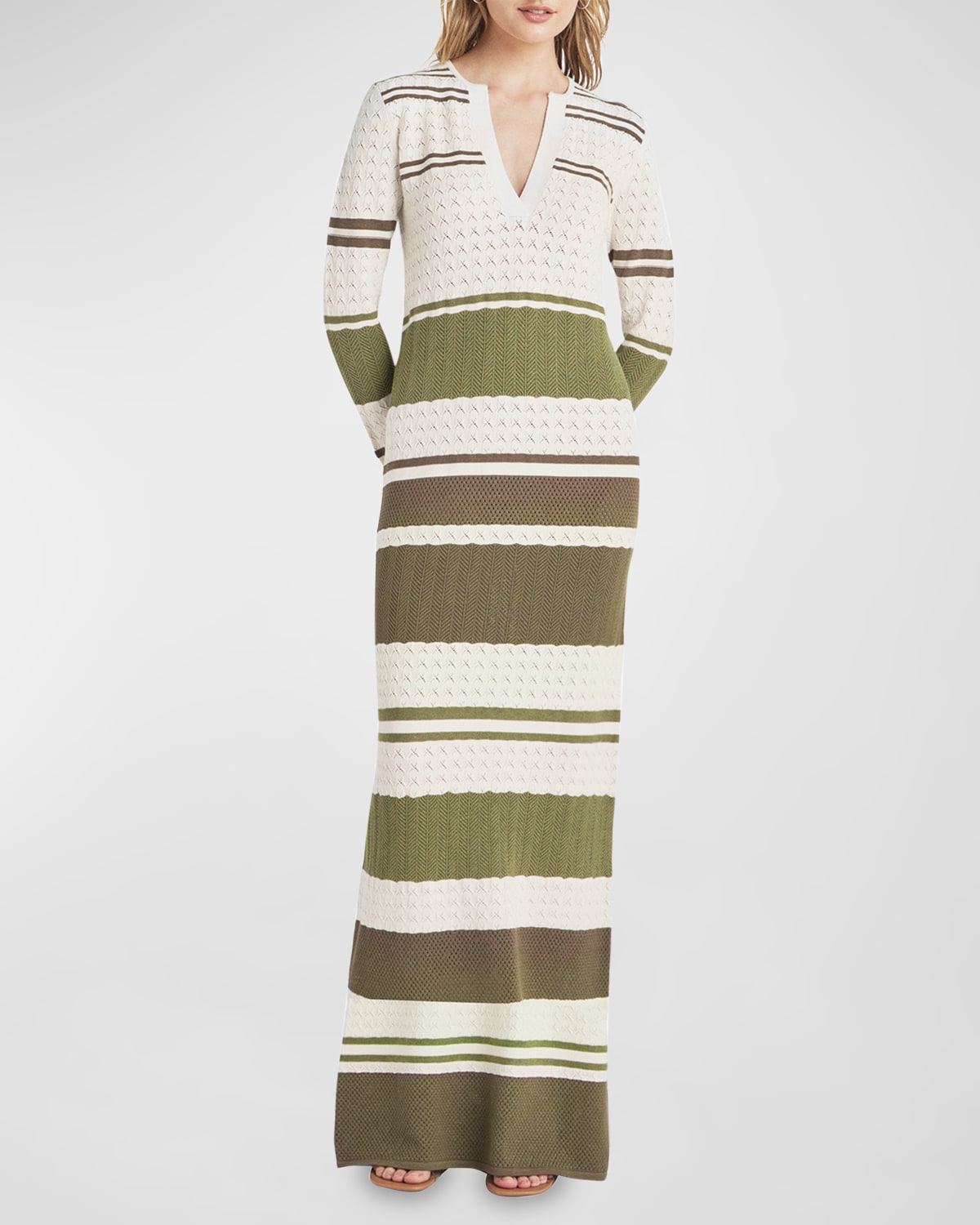 Despina Pointelle Stripe Maxi Sweater Dress