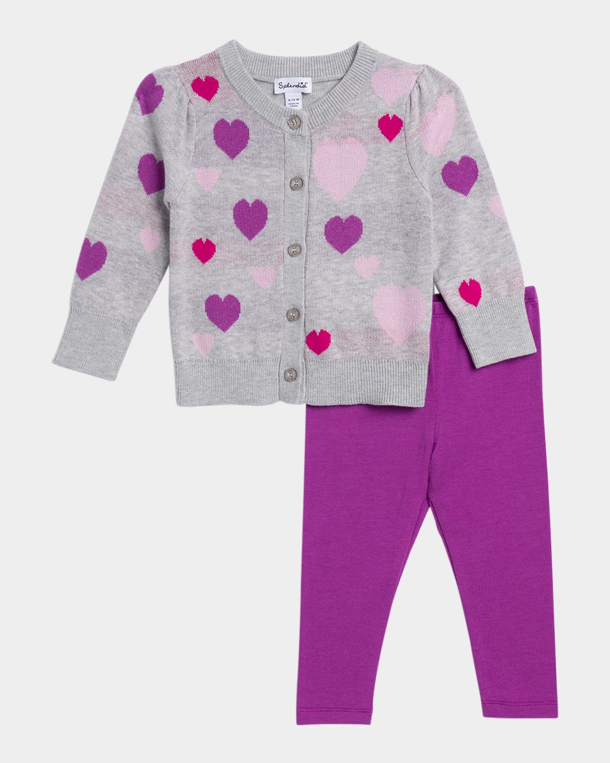 Girl's Tossed Heart Sweater & Leggings Set, Size 3M-24