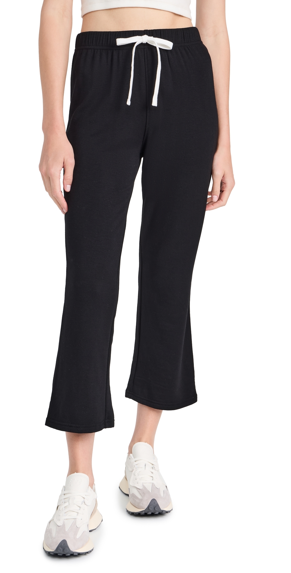 Fabric: Lightweight fleece. Flare silhouette. Covered elastic waist with drawstring. Shell: 95% modal/5% spandex. Wash cold. Made in the USA. Measurements: Measurements from size S Rise: 10.25in / 26cm Inseam: 25.25in / 64cm Leg opening: 17.25in / 44cm