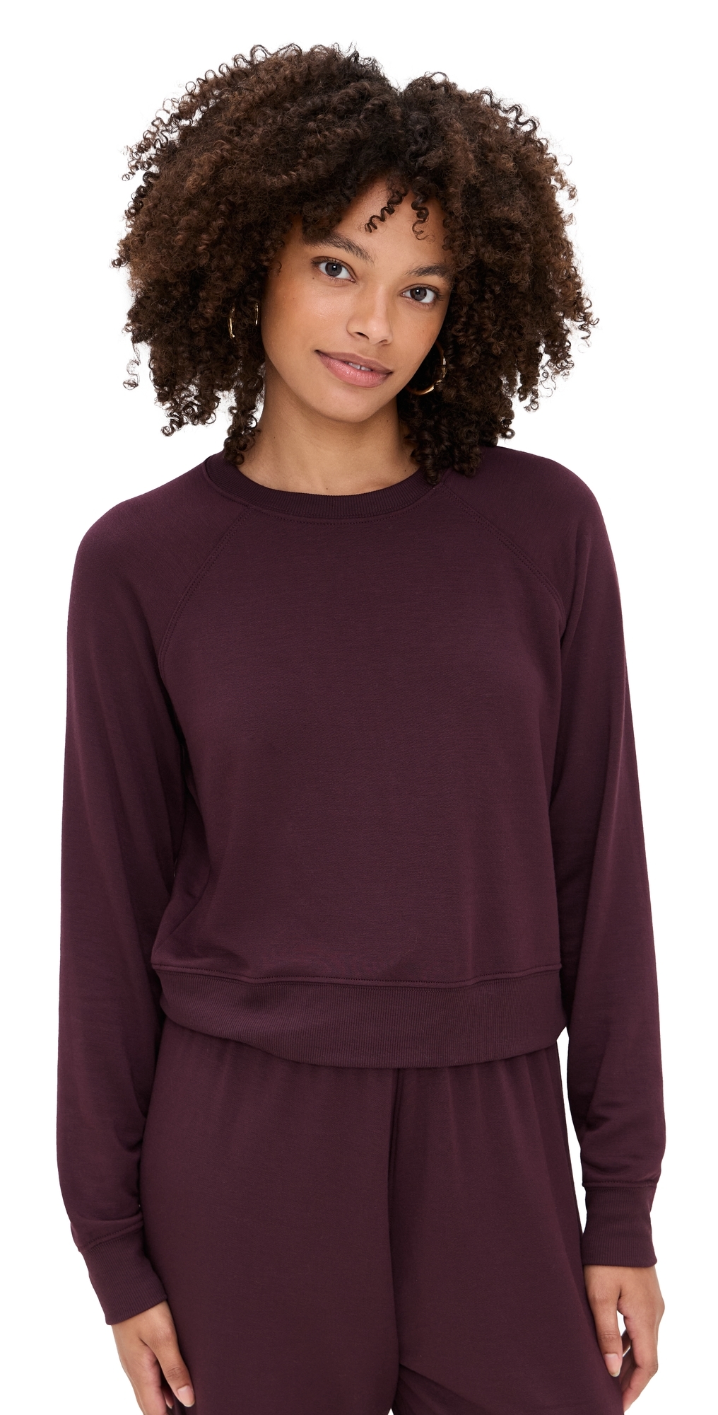 Fabric: Lightweight, super-stretch fleece. Ribbed trim. Crew neck. Long raglan sleeves. Shell: 95% modal/5% polyester. Wash cold. Made in the USA. Measurements: Measurements from size S Length: 19in / 48.0cm, from shoulder