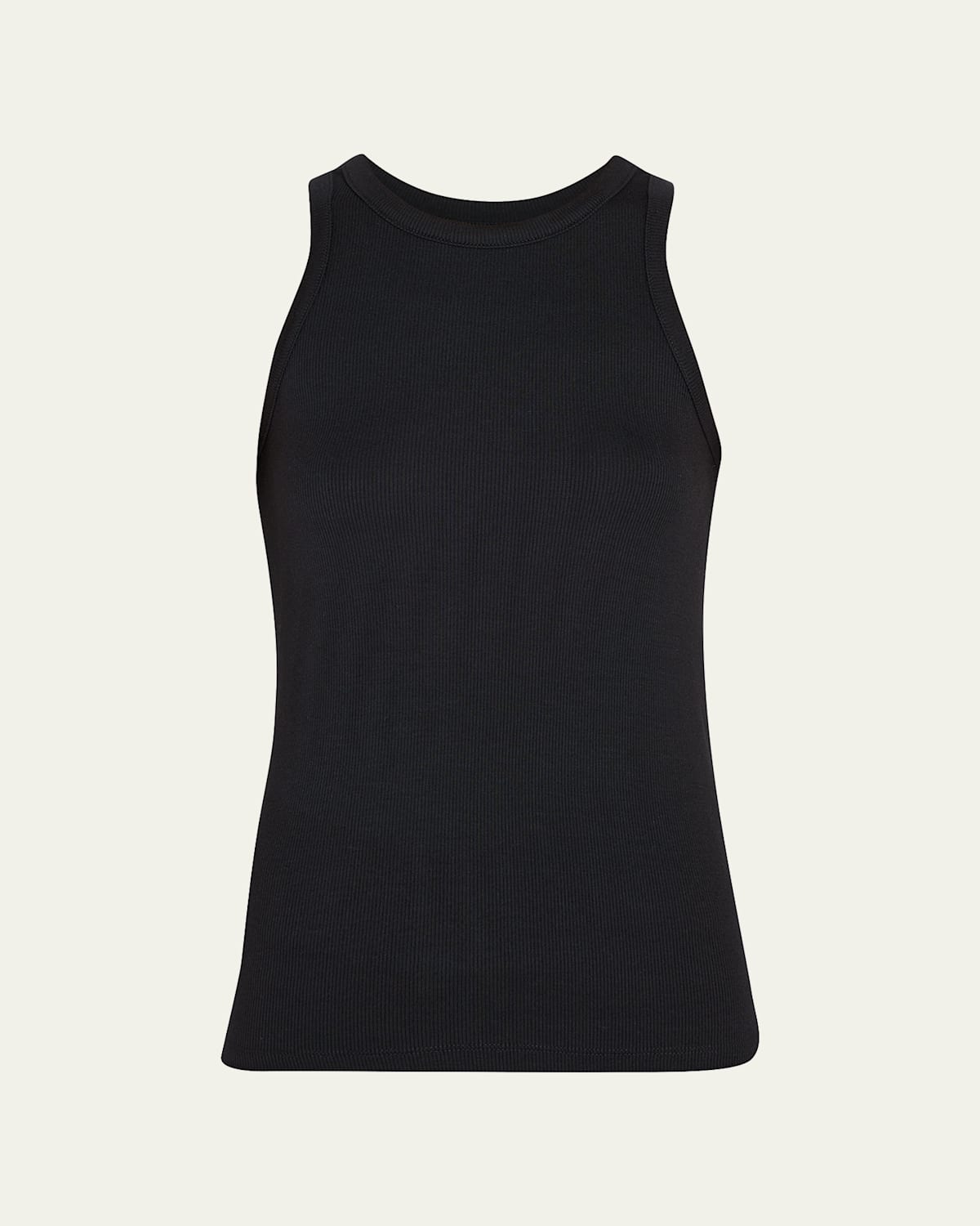 Splits59 "Kiki" tank top in a moisturewicking, quickdrying jersey rib fabric Crew neckline Sleeveless Racerback Semifitted Hem sits at the hip Pullover style Modal/spandex Made in USA
