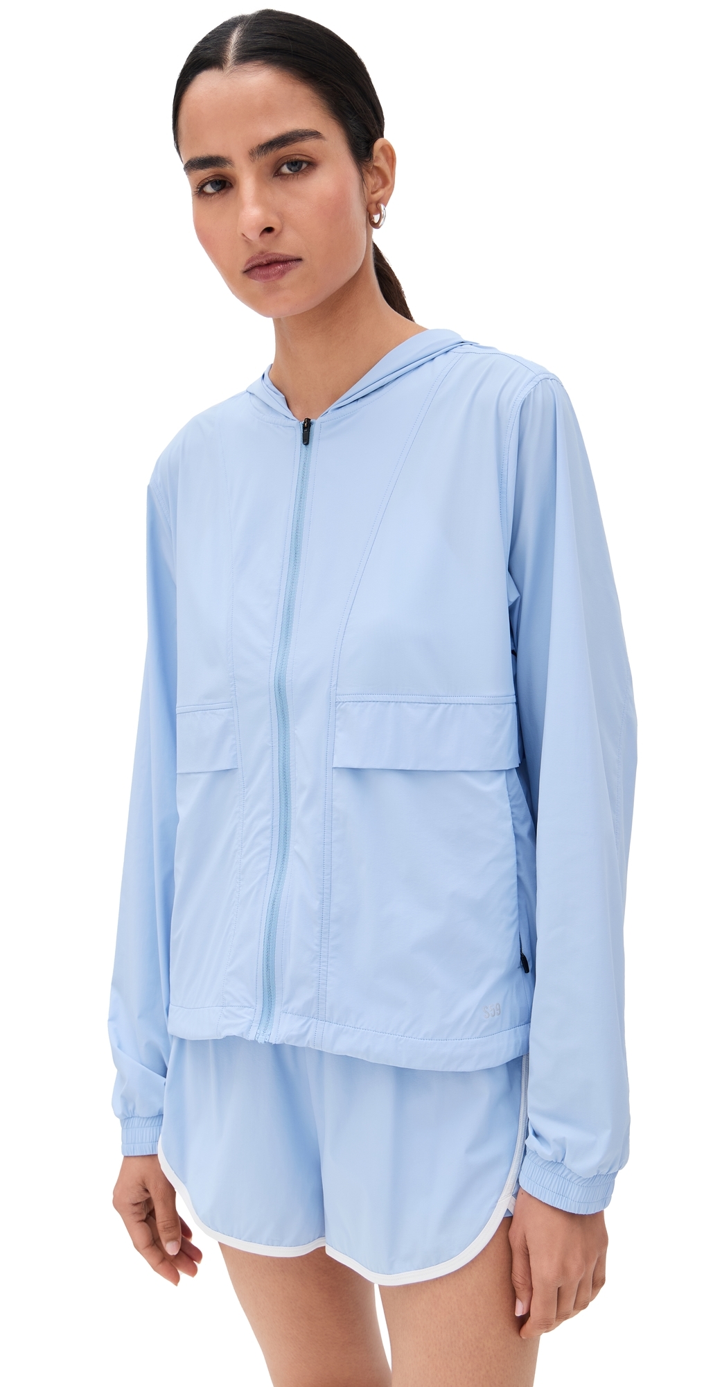 Fabric: Lightweight technical weave with stretch. Back mesh vent. Hooded neckline. Long sleeves with elastic cuffs. Zip at front. Zip front pockets. Shell: 85% nylon/15% spandex. Wash cold. Imported, China. Measurements: Measurements from size S Length: 22in / 56.0cm, from shoulder