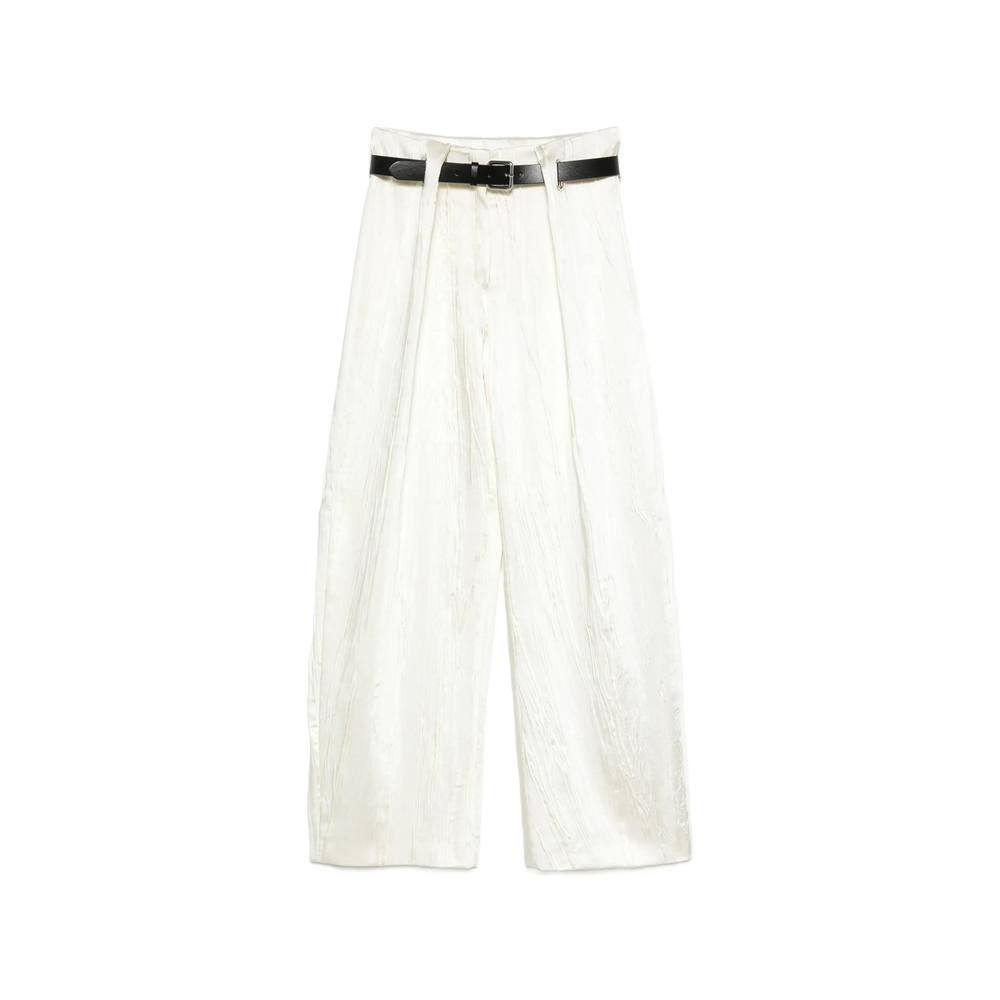 white belted textured wide leg pleated front regular fit