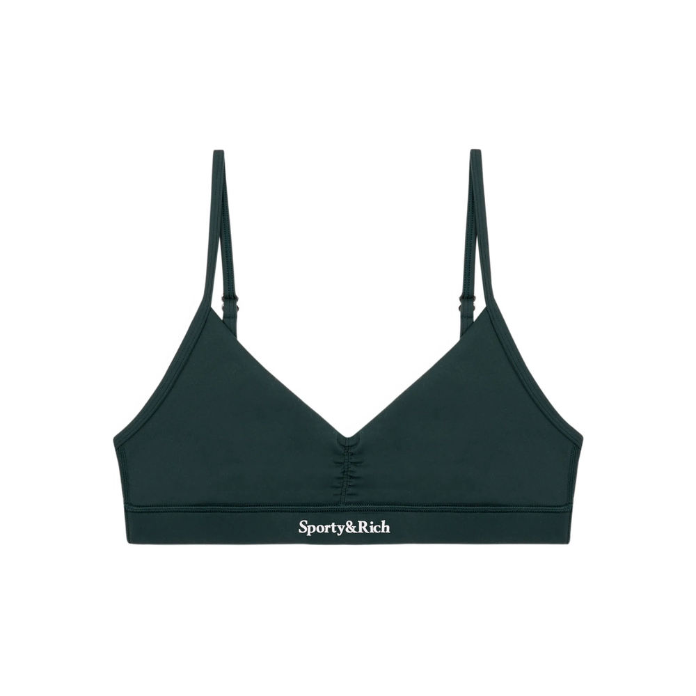 forest green adjustable straps logo lettering elasticated underband V-neck ruched detail