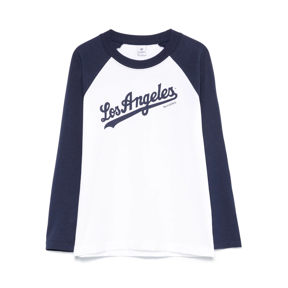 white crew neck three-quarter length raglan sleeves logo print to the front