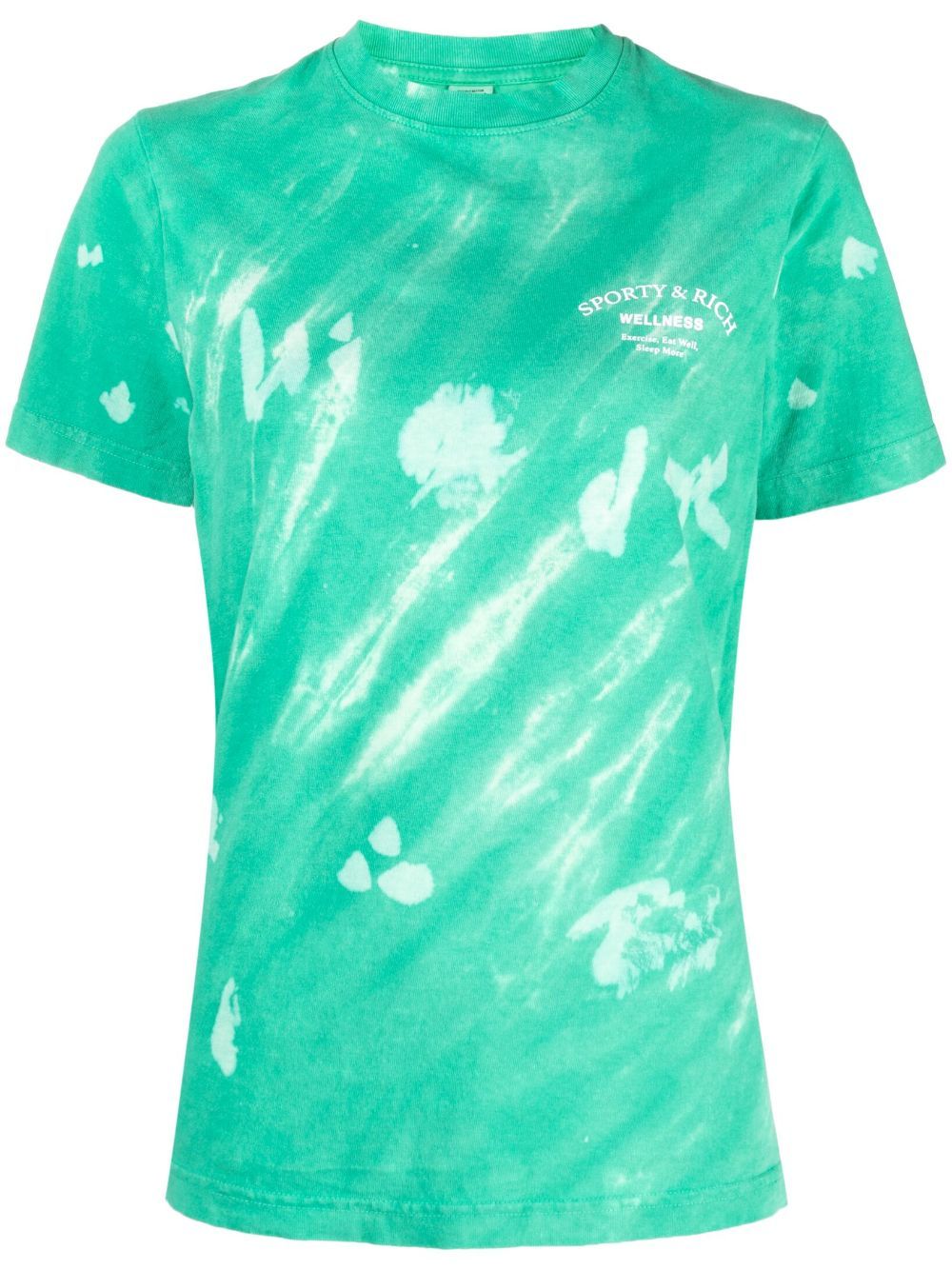 tie-dye print cotton T-shirt from Sporty & Rich featuring mint green, white, cotton, tie-dye print, logo print at the chest, crew neck, short sleeves and straight hem.