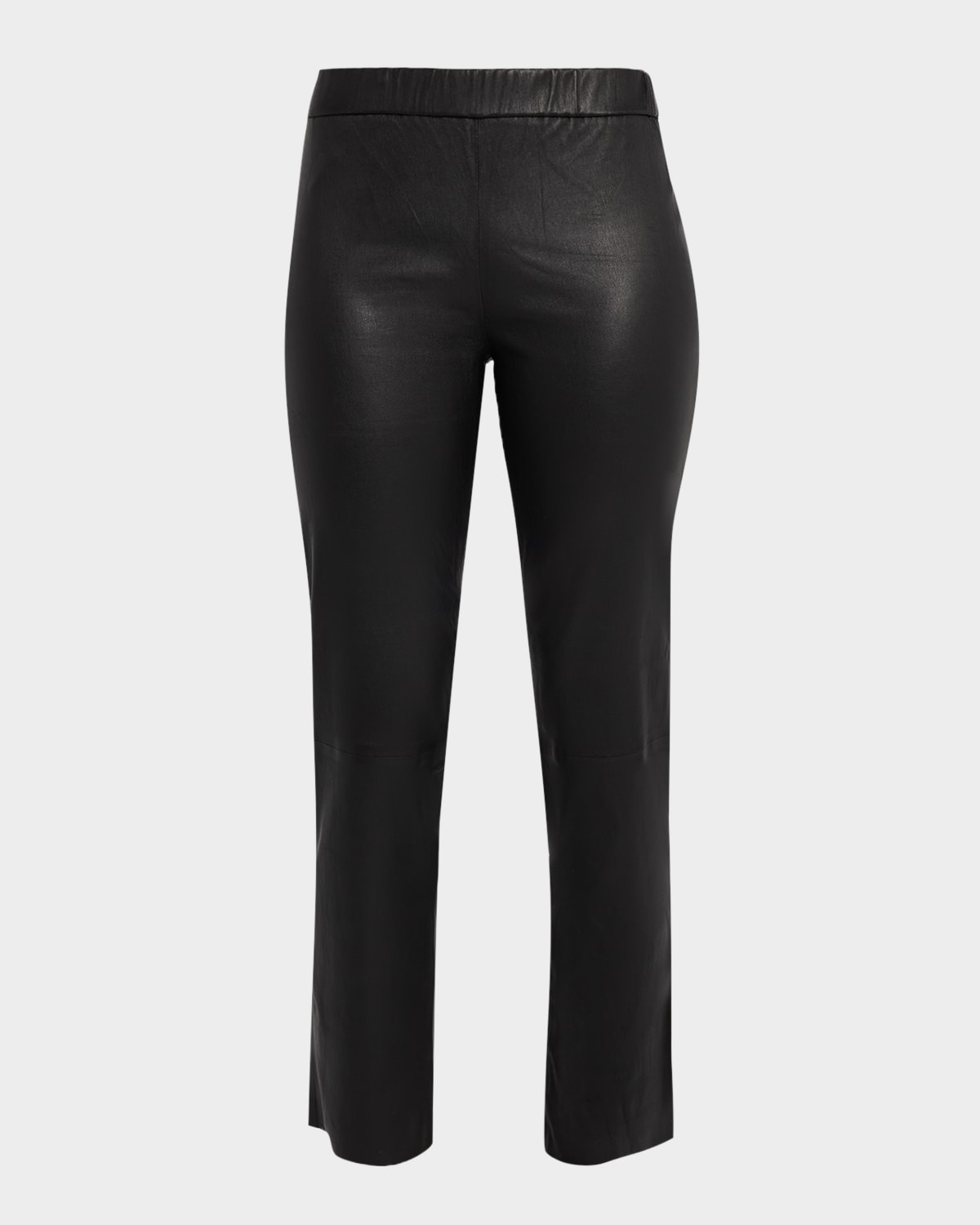 Cut from signature stretch leather, the "Sophia" pants by SPRWMN boast a classic cigarette silhouette for an effortlessly chic look Approx. 10" rise; 29" inseam Highrise waistband Cropped at the ankle Fitted through skinny legs Pullon style Leather Imported
