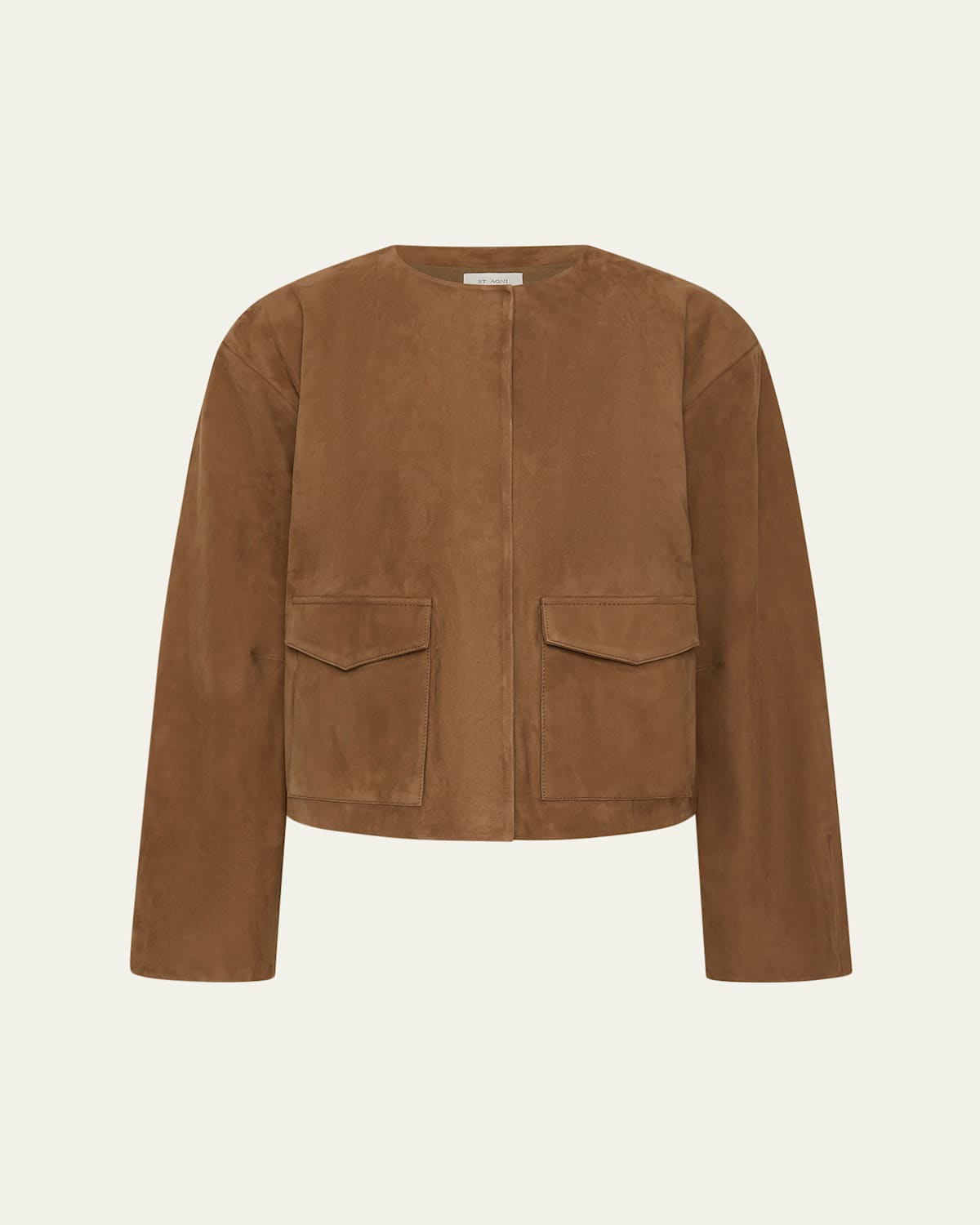 St. Agni cocoon bomber jacket in lambskin suede Round neckline Long curved sleeves Flap pockets Relaxed fit Hem sits at the hip Concealed buttonfront Suede Lining: Tencel® lyocell Professional cleaning recommended Imported