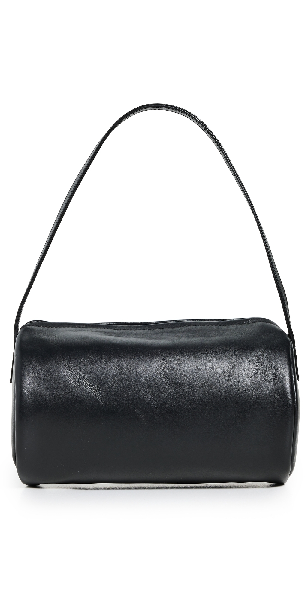 Cowhide. Cylinder pouch silhouette. Zip closure. Lining: Microfiber. Weight: 6oz / 0.17kg. Imported, India. Measurements: Height: 6.25in / 16cm Length: 9.5in / 24cm Depth: 4in / 10cm Handle drop: 7.75in / 20cm