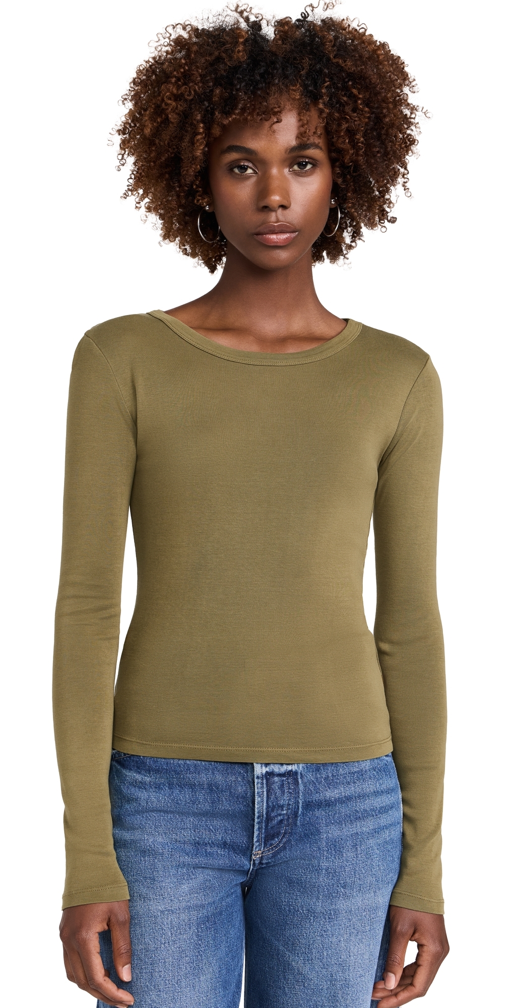 Fabric: Lightweight jersey. Crew neck. Long sleeves. Shell: 100% cotton. Wash cold. Imported, China. Measurements: Measurements from size XS Length: 20.5in / 52.0cm, from shoulder