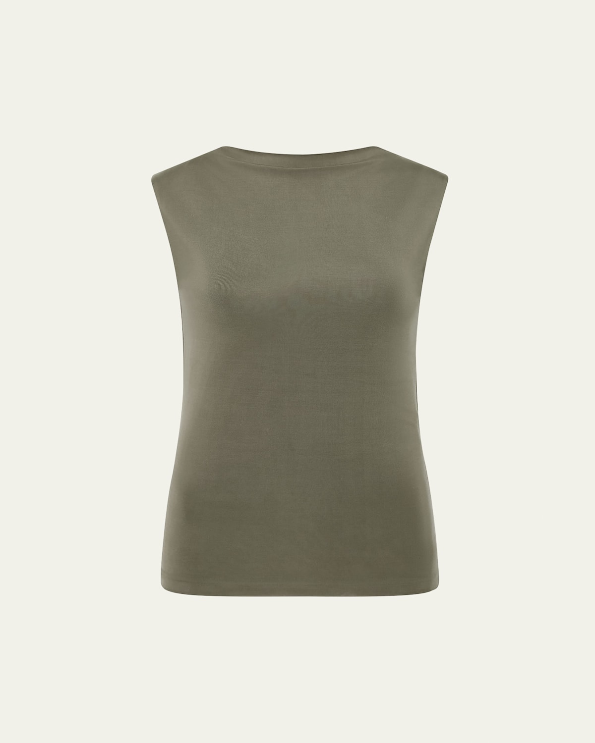 St. Agni knit top in a cuprojersey blend High neckline Sleeveless Fitted Hem sits at the hip Pullover style Cupro/spandex Unlined Hand wash Imported