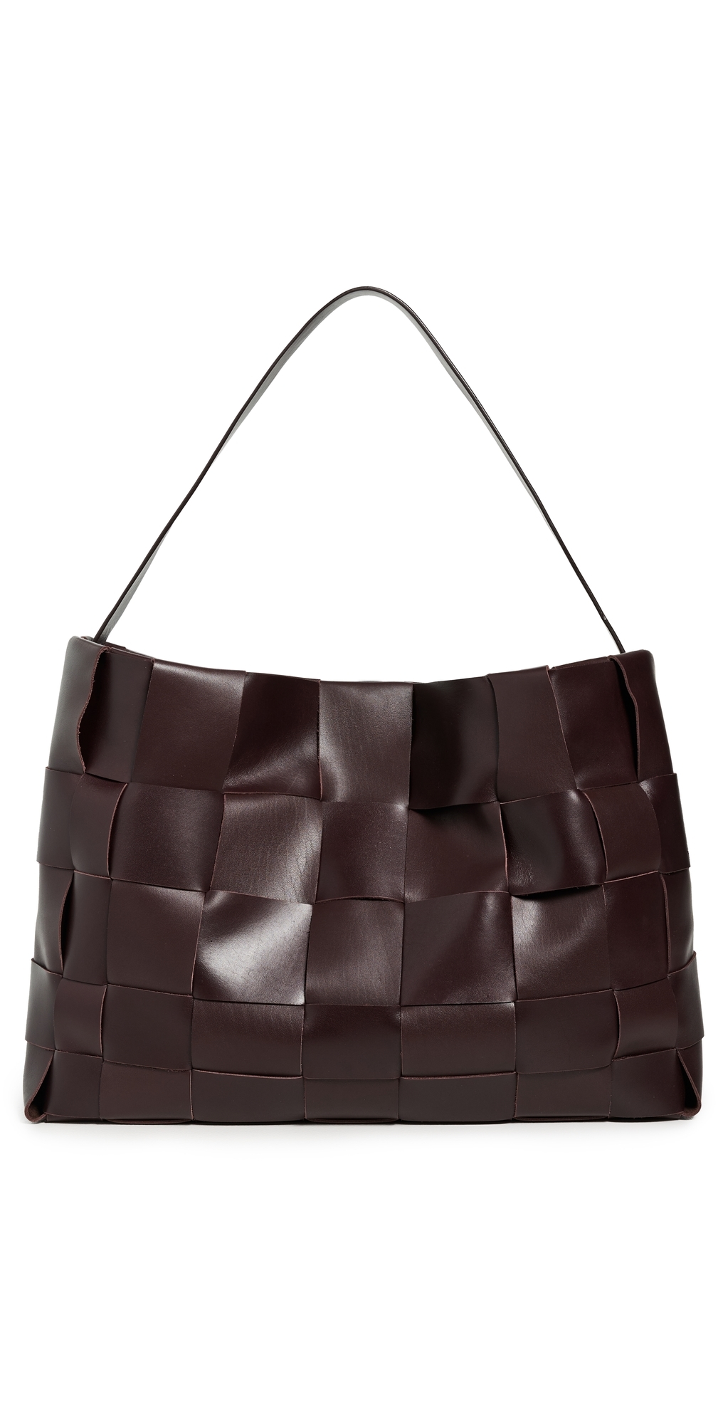 Cowhide. Woven design. Open top with magnetic closure. Patch interior pocket. Shoulder strap. Lining: Textile. Weight: 43oz / 1.22kg. Imported, India. Measurements: Height: 11.5in / 29.5cm Length: 15.75in / 40cm Depth: 4.75in / 12cm Strap drop: 23.5in / 60cm