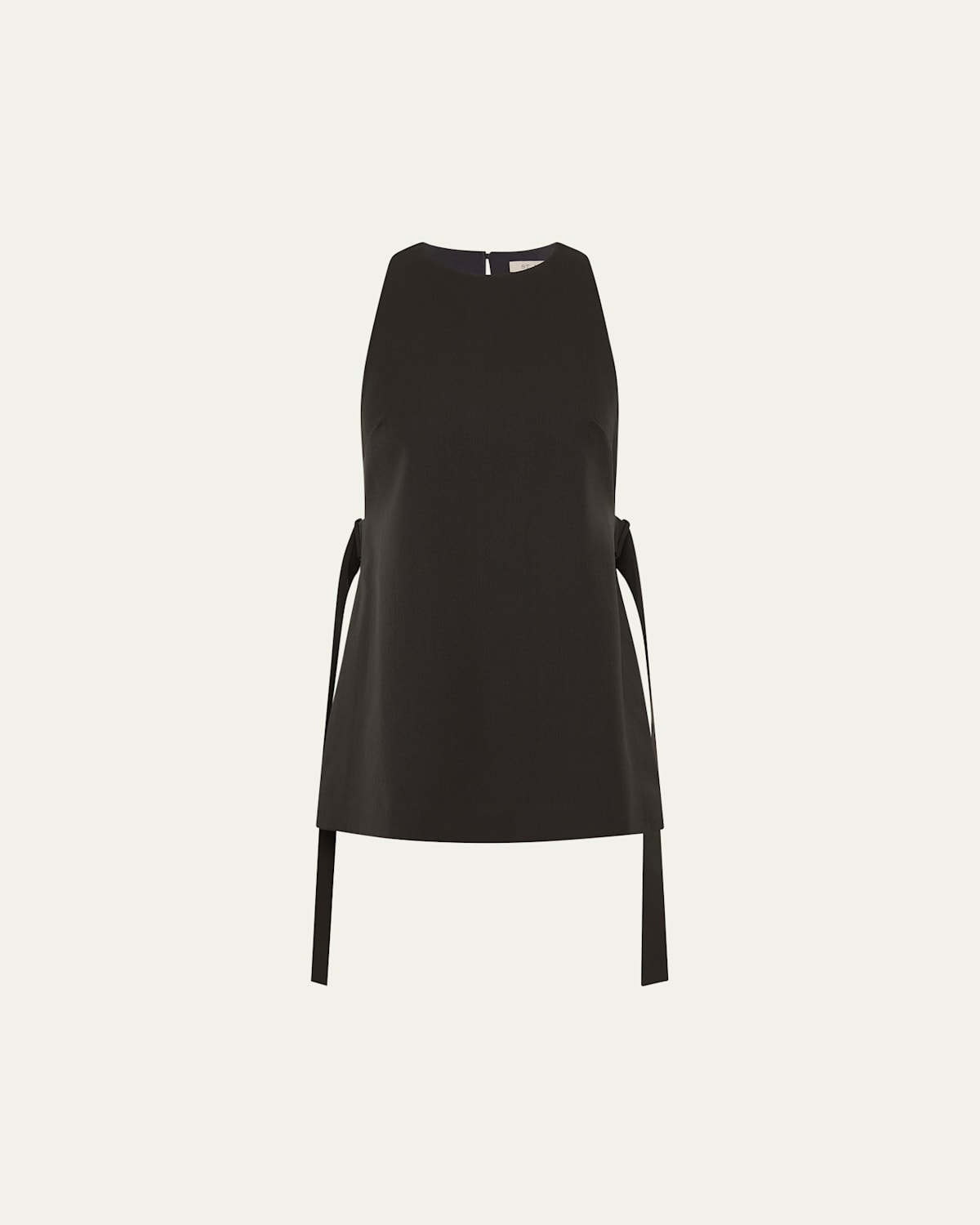 St. Agni wool top enhanced with adjustable side Drings High neckline Sleeveless Slim fit Hem falls to the hip Back keyhole closure Wool/elastane Unlined Dry clean Imported