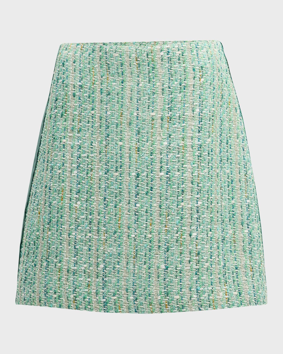 Grosgrain Side-Stripe Metallic Slub And Tape Tweed Mini Skirt