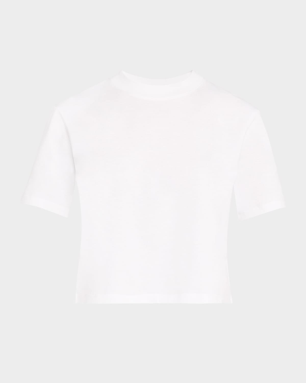 St. John Tshirt in jersey Crew neckline Short sleeves Relaxed fit Cropped length Pullover style Cotton Imported