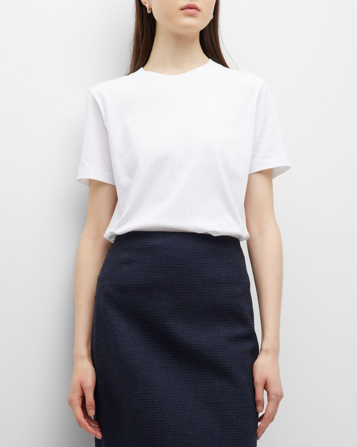 St. John jersey top Crew neckline Short sleeves Relaxed fit Pullover style Cotton Professional cleaning recommended Made in Portugal
