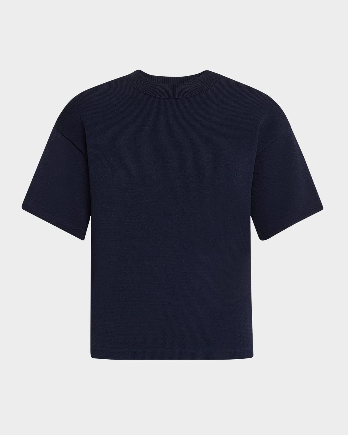 Mixed Gauge Rib Knit Short-Sleeve Sweater