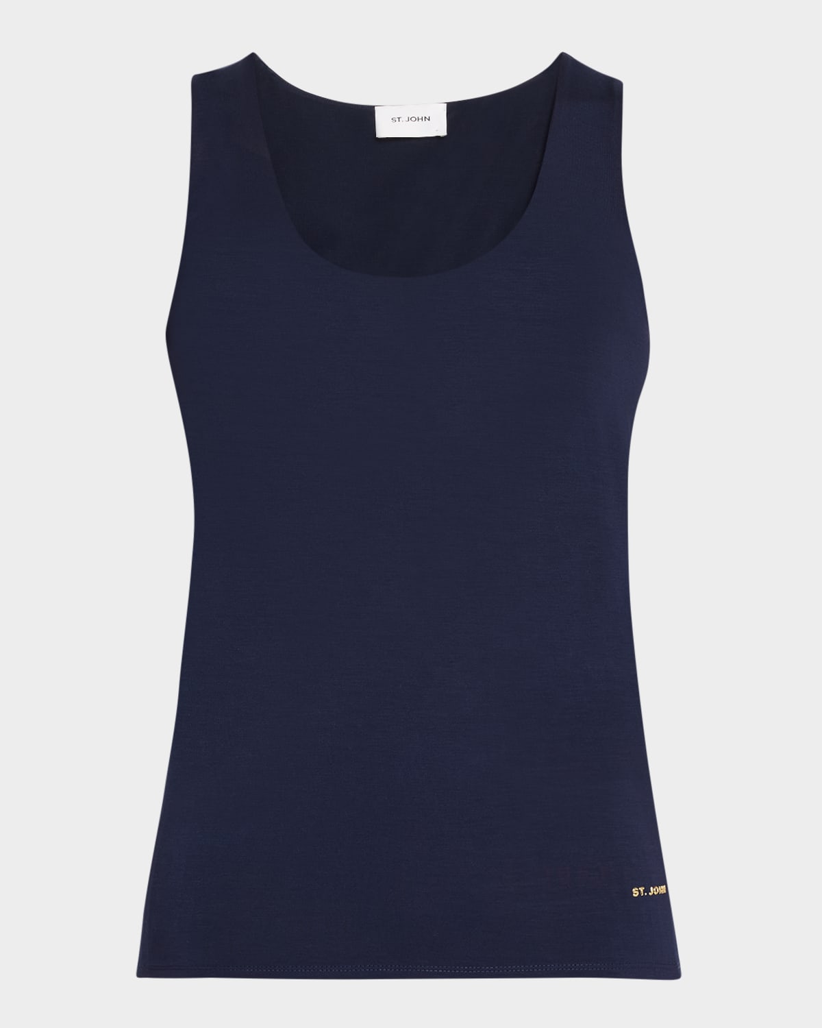 St. John tank top in polished stretch jersey Scoop neckline Sleeveless Relaxed fit Pullover style Lyocell/elastane Dry clean Made in Portugal