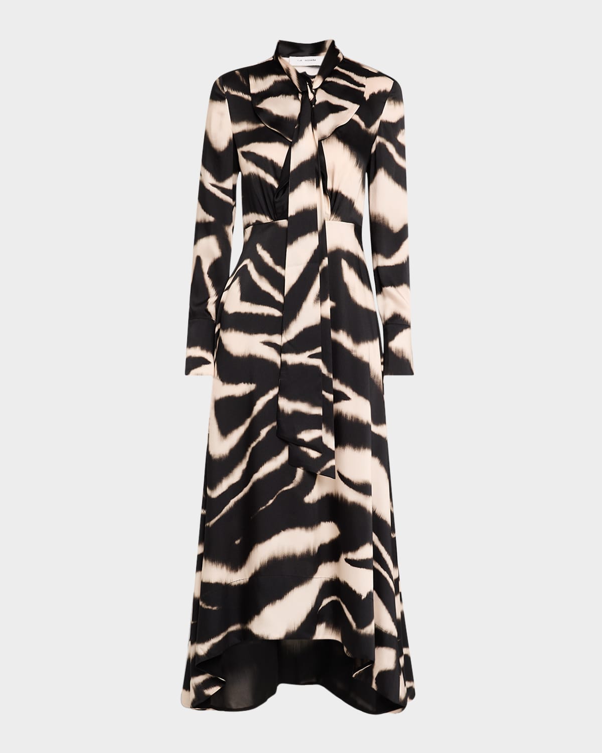 Zebra-Print Long-Sleeve Scarf Midi Dress