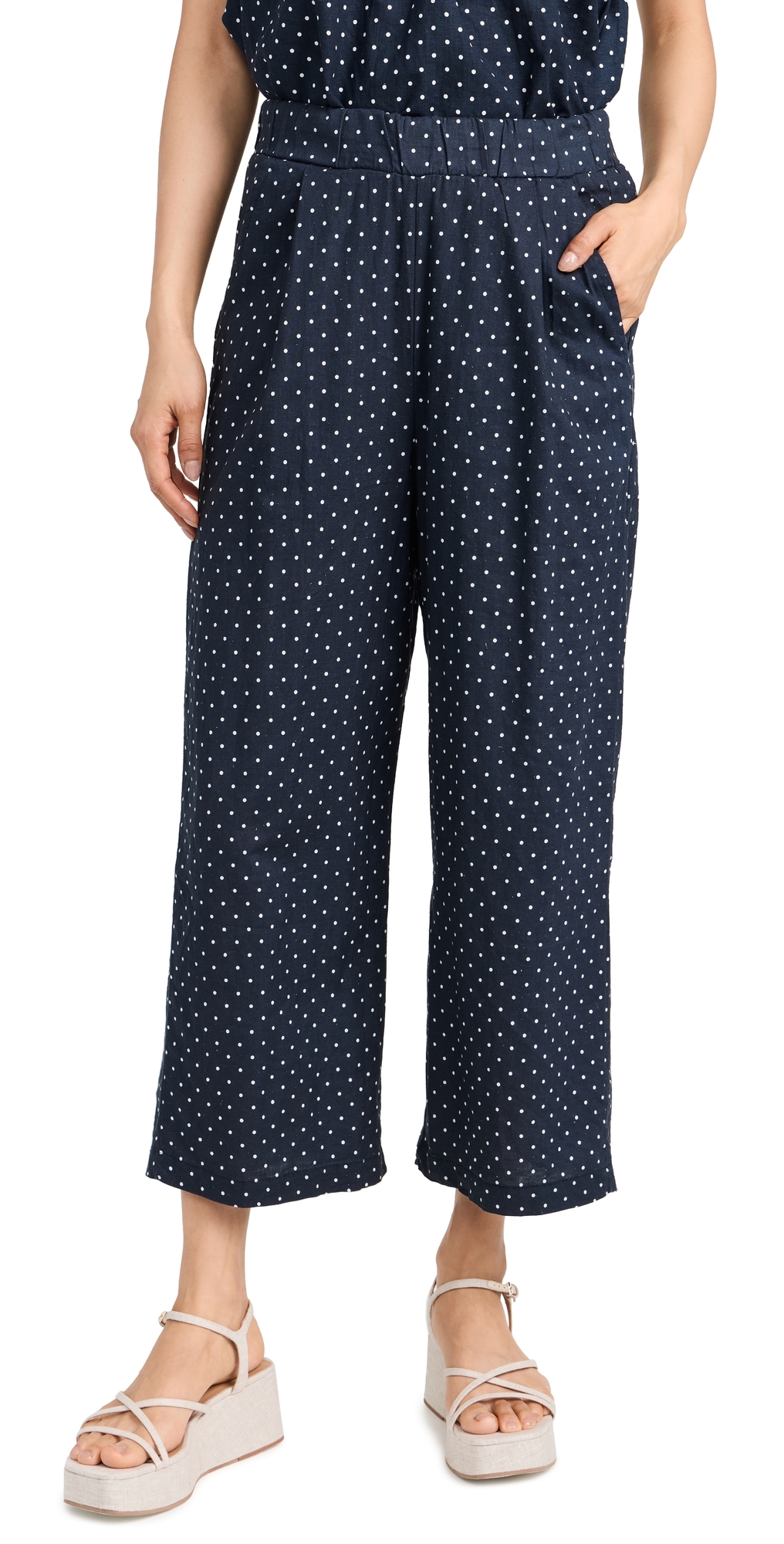 Fabric: Lightweight, non-stretch linen weave. Polka-dot print. Covered elastic waistband. Slant hip pockets. Shell: 55% linen/45% rayon. Wash cold. Made in the USA. Measurements: Measurements from size Xs Rise: 11.75in / 30cm Inseam: 20.5in / 52cm Leg opening: 25.25in / 64cm