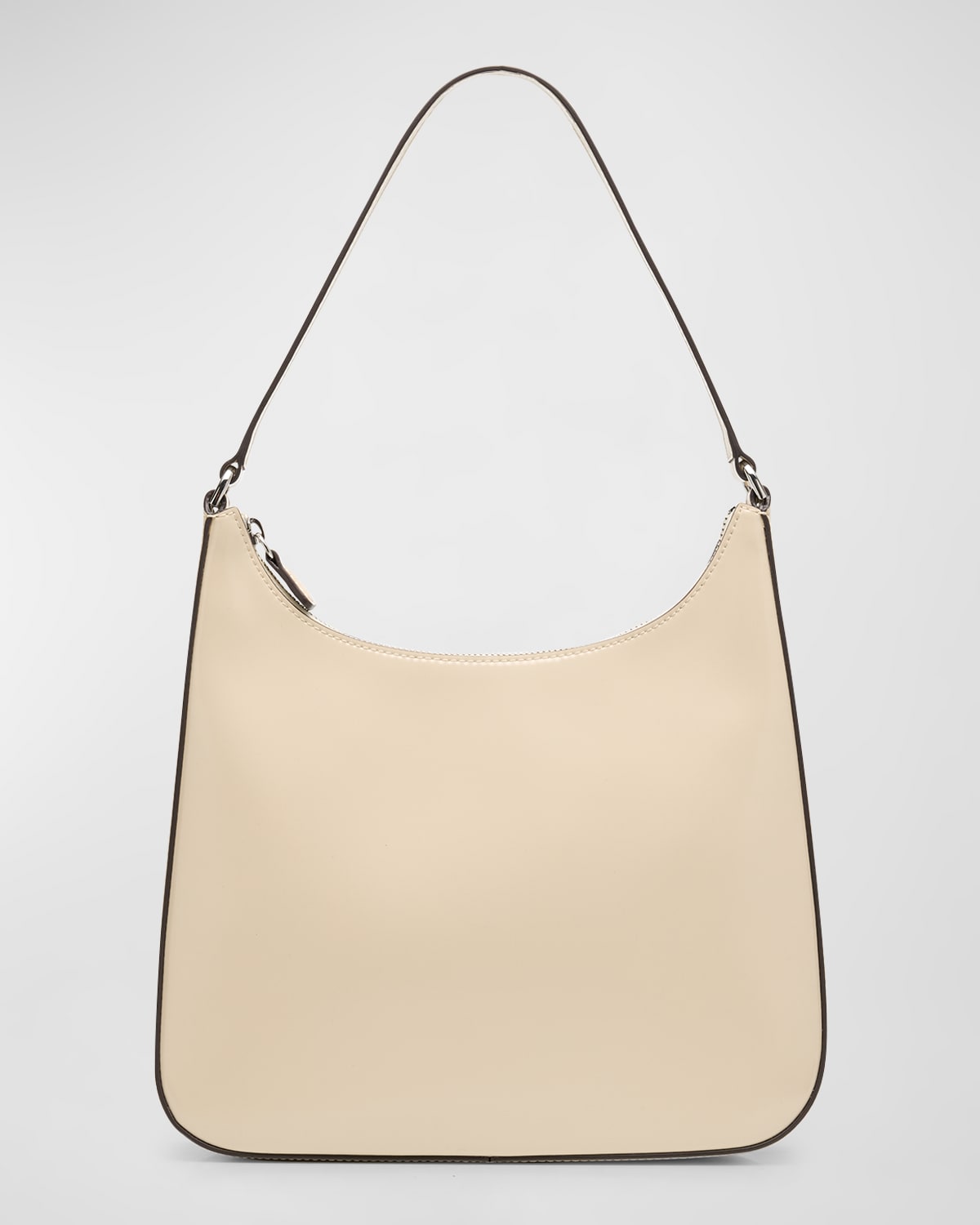 Staud "Alec" shoulder bag in shiny leather Flat shoulder strap Zip top closure Interior, one zip pocket Lining: Leather Approx. 8.5"H x 11"W x 2.5"D Imported