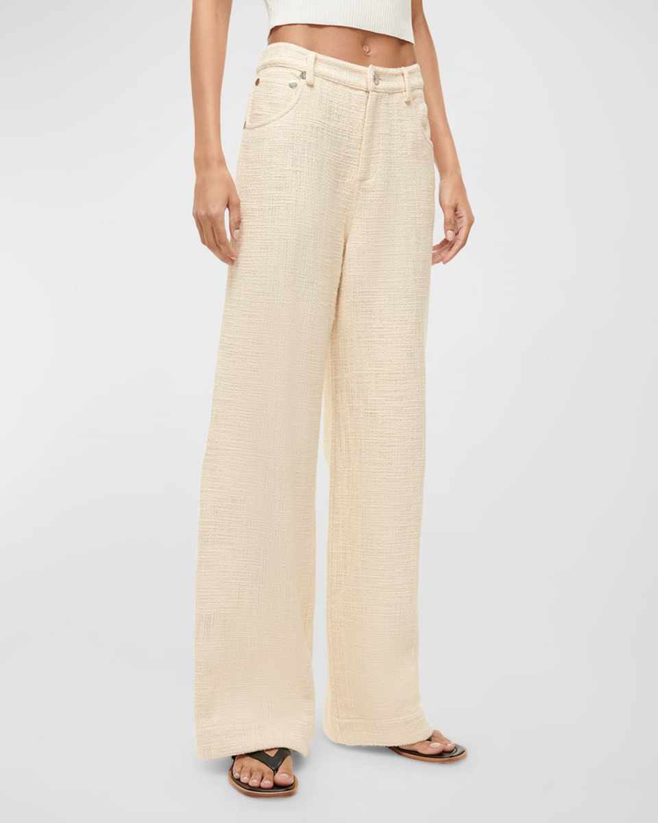 STAUD "Grayson" relaxed tweed pants Low rise Fivepocket style Wide legs Full length Button/zip fly Cotton Imported