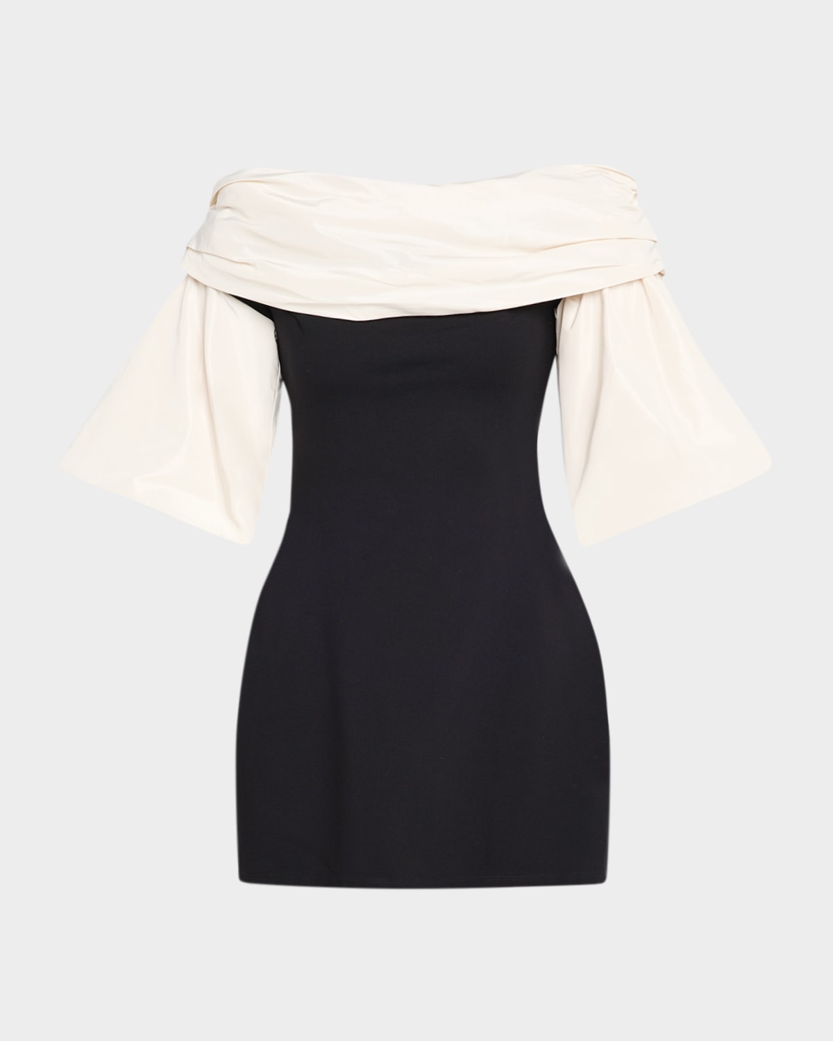 Defined by a structural, draped taffeta neckline with matching statement sleeves, the "Harper" dress by STAUD is made from a comfortable stretch ponte fabric Offtheshoulder neckline Wide elbowlength sleeves Hem falls below the knee Bodycon fit Center back zipper Rayon/cellulose acetate/nylon/polyamide/spandex Dry clean Imported