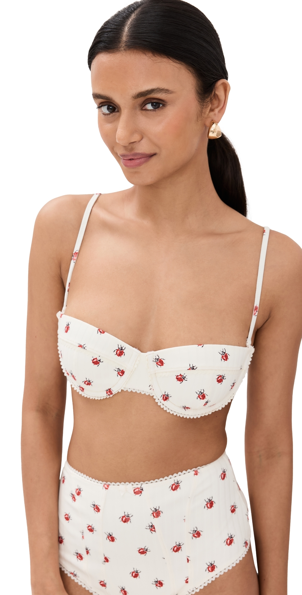 Exclusive to Shopbop Ribbed material with ladybug print. Picot trim. Hook-and-eye clasp. Optional, adjustable straps. Padded underwire cups. Shell: 91% nylon/9% spandex. Hand wash. Imported, China. Bottoms sold separately.
