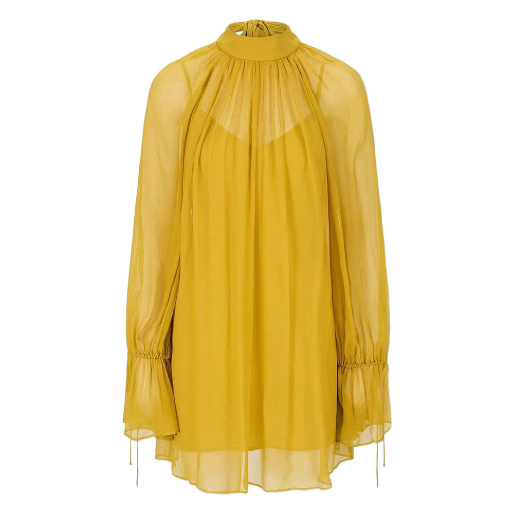 turmeric yellow rear tie fastening cuffed sleeves pleated design