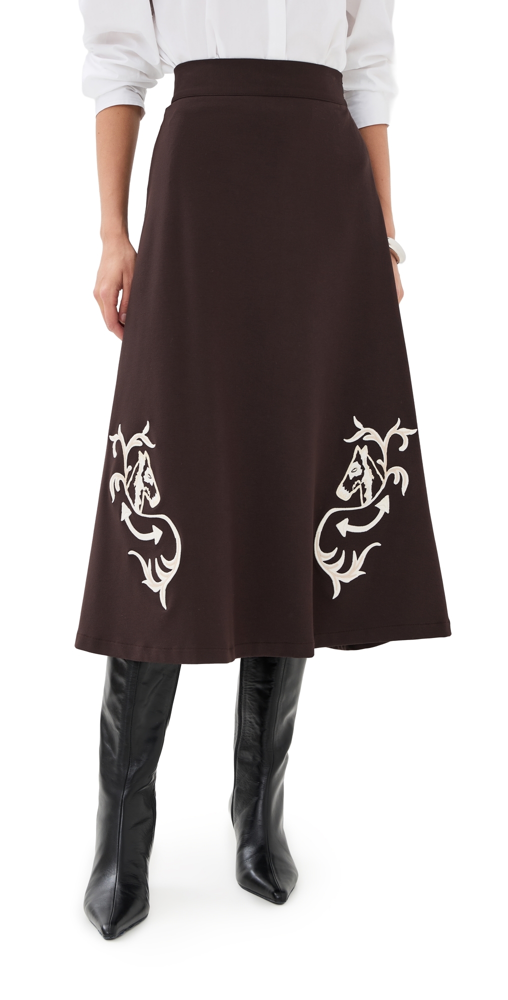 Fabric: Mid-weight stretch jersey. Contrast embroidery. Covered elastic waistband. Hook-and-eye and hidden zip at side. Shell: 55% viscose/40% polyamide/5% elastane. Unlined. Dry clean. Made in Italy. Measurements: Measurements from size 38 Length: 33.75in / 86.0cm