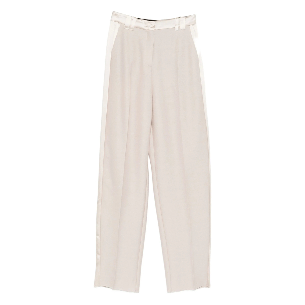 light beige side panels belt loops straight leg concealed front fastening two side pockets
