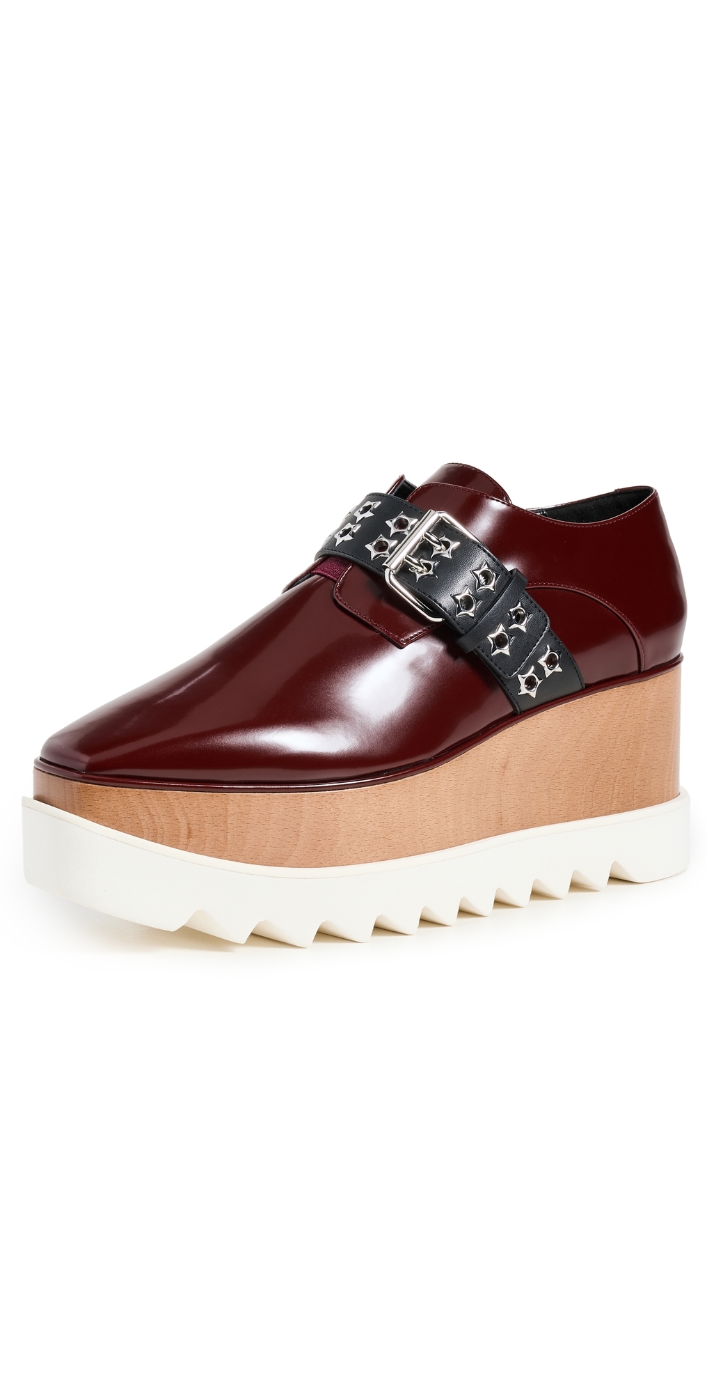 Upper: Faux leather. Wooden platform with contrast chunky sole. Buckle vamp strap with silver-tone star grommets. Derby-style shoes. Elastic top. Rubber sole. Made in Italy. This item cannot be gift-boxed. Measurements: Heel: 3.25in / 80mm Platform: 2.25in / 55mm