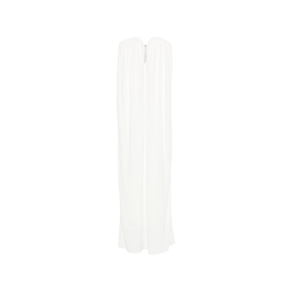 white gathered detailing strapless rear zip fastening floor-length draped design