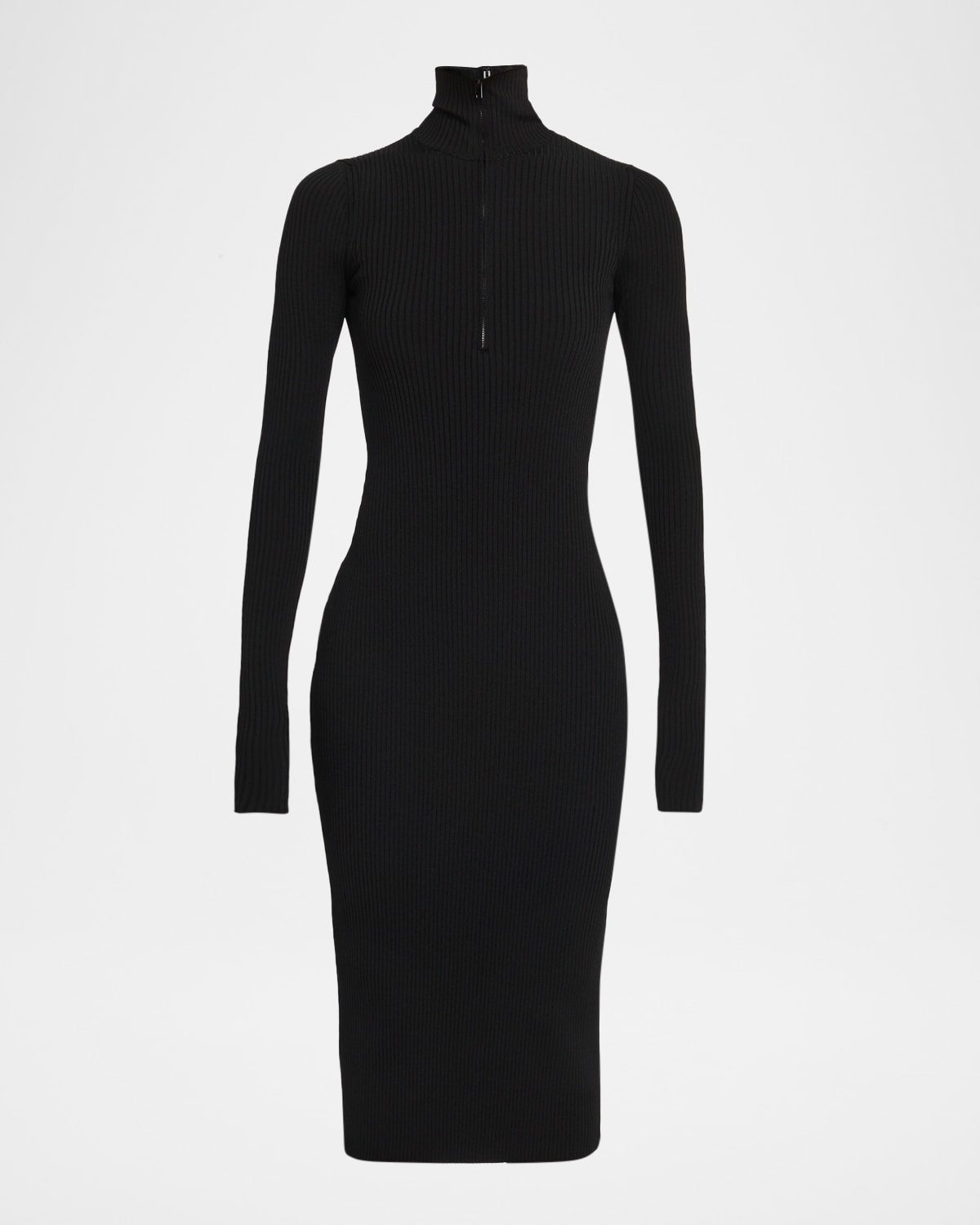 Long-Sleeve Zip-Front Rib-Knit Midi Dress